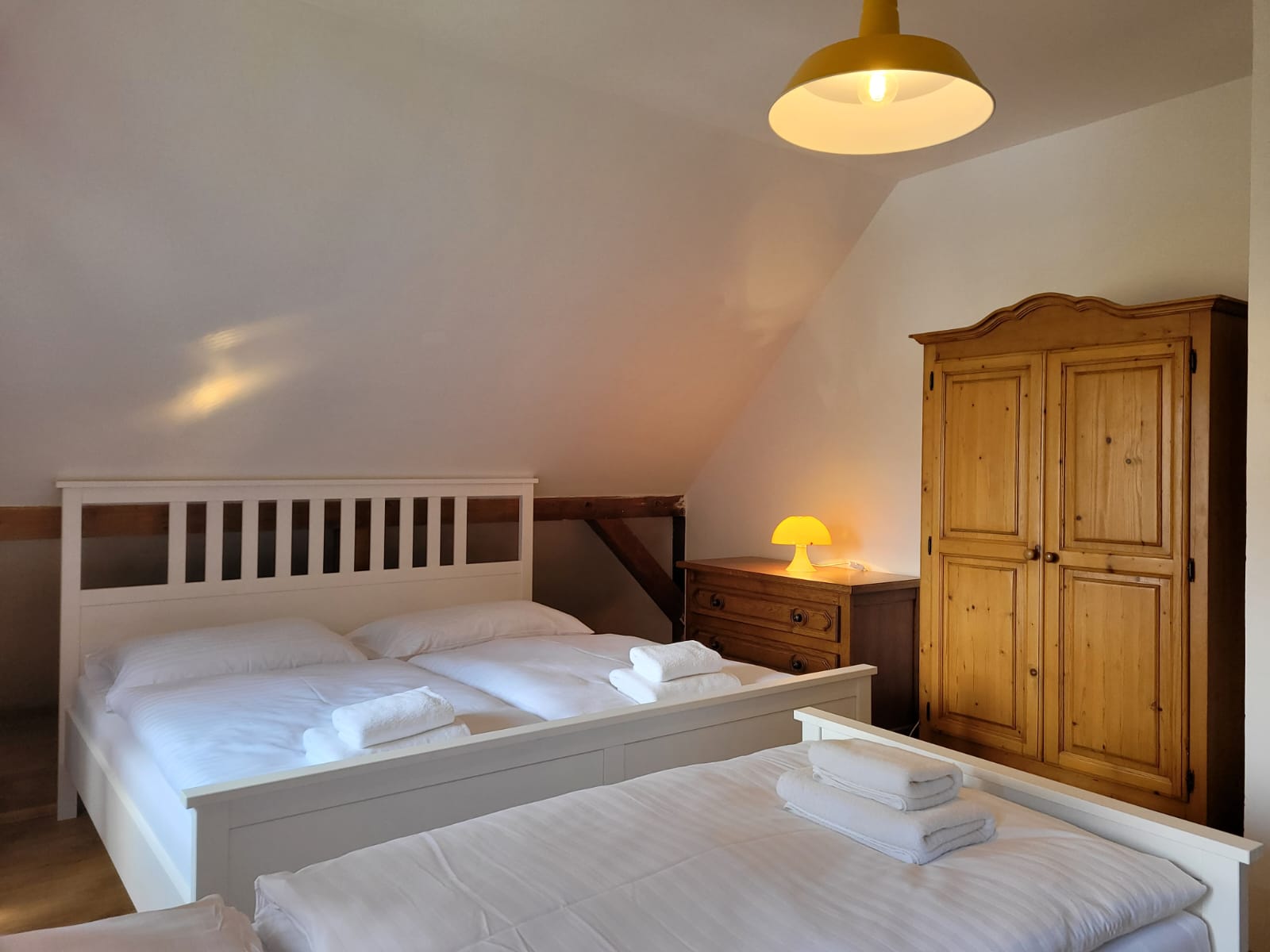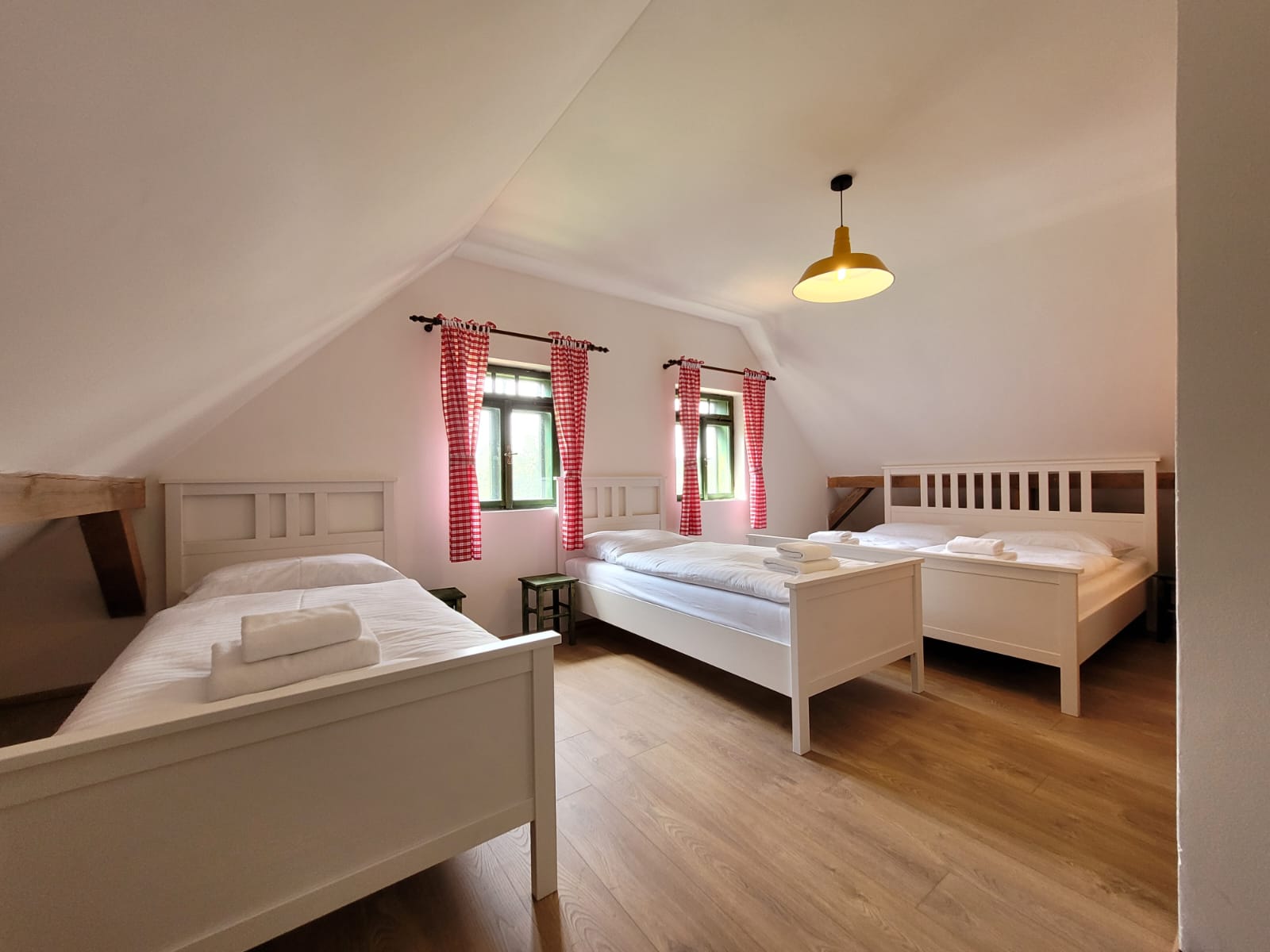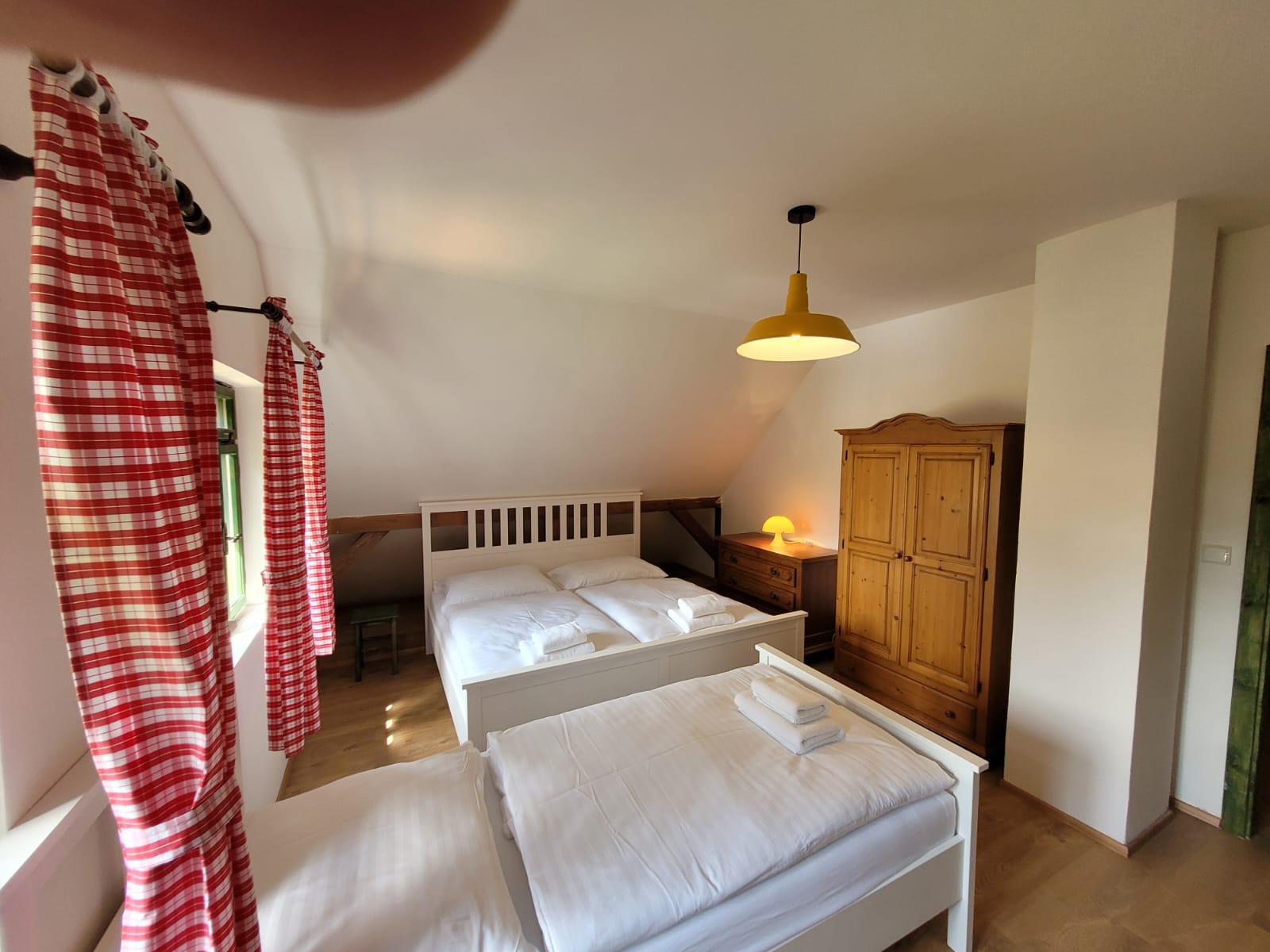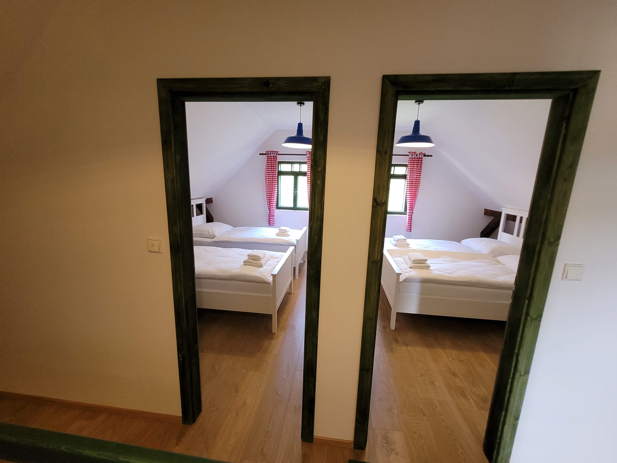 - 3 ložnice (1.s manželskou postelí, 2. dvě jednolůžkové postele, 3. manželská postel a dvě jednolůžkové postele)